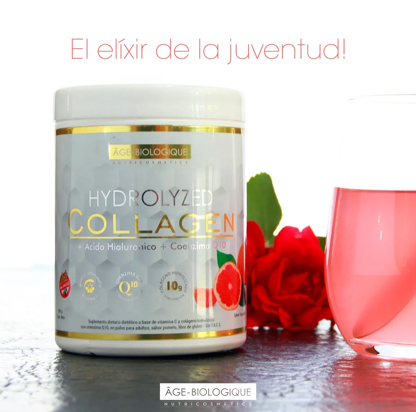 Un suplemento dietario en polvo que combina colágeno hidrolizado (10 g por dosis) con ácido hialurónico, coenzima Q10 y vitamina C, presentado en sabor pomelo rosado. Su formato bebible está diseñado para máxima absorción gracias a sus microfragmentos de colágeno.