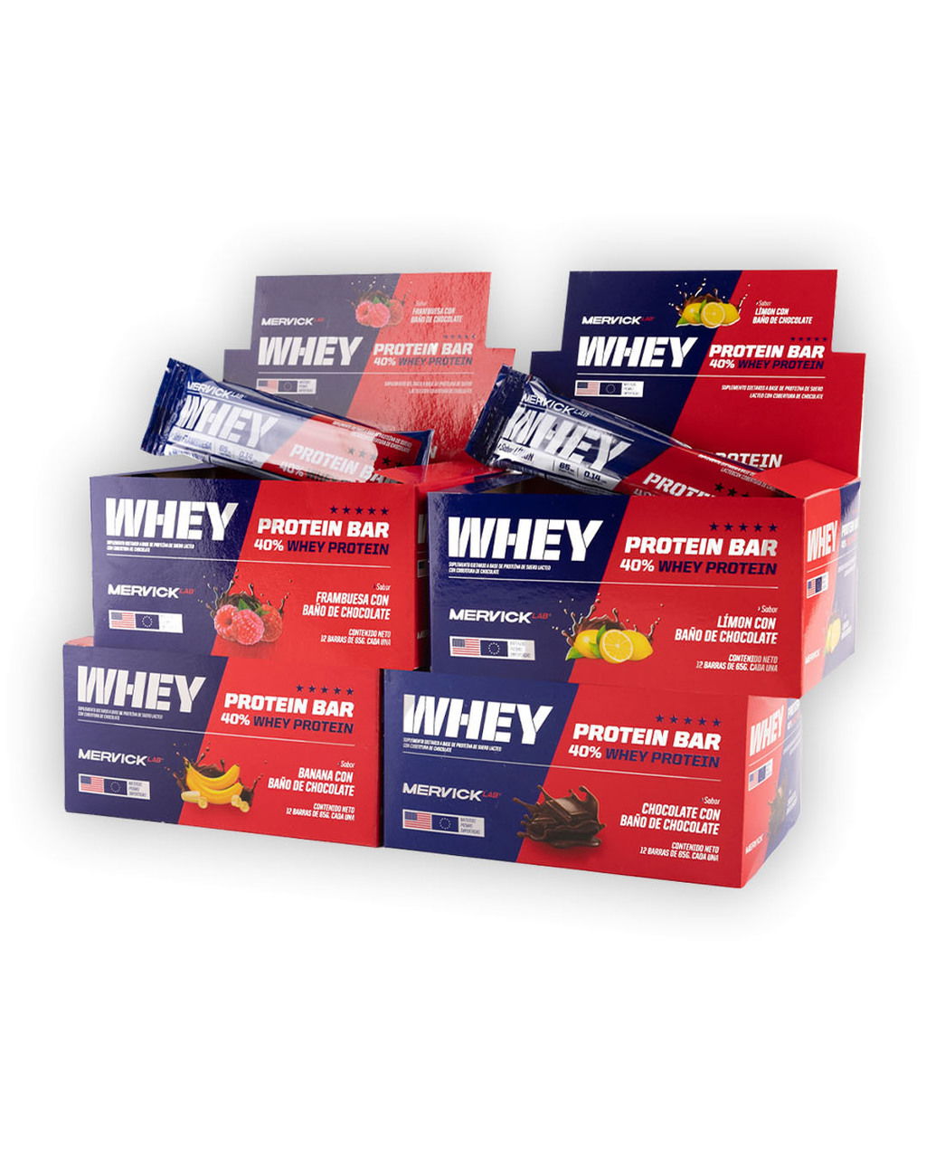 Whey Protein Bar es un barra proteica desarrollada por Mervick como un excelente complemento para acelerar la recuperación luego de la actividad física y mantener diariamente un sustrato importante de proteínas para la síntesis muscular.