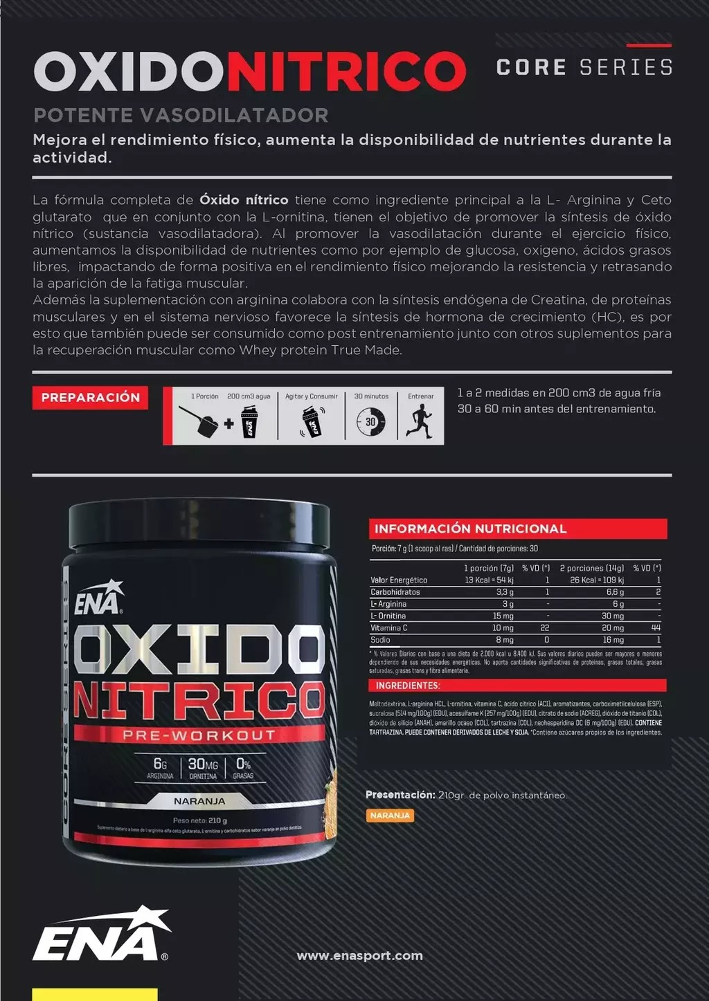 Un suplemento precursor de óxido nítrico en polvo, formulado con L-arginina alfa-cetoglutarato, L-ornitina y glucosa, diseñado para mejorar la vasodilatación y maximizar la entrega de oxígeno y nutrientes a los músculos.