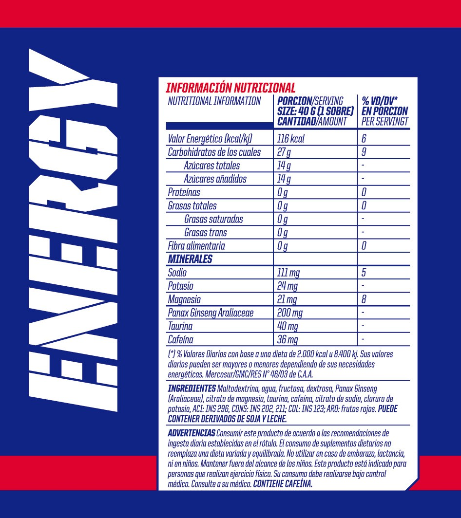 • Proporciona energía rápida y eficiente durante entrenamientos o competencias exigentes.