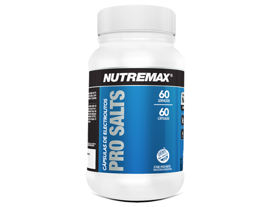 Prosalts de Nutremax es un suplemento dietario en cápsulas de electrolitos, formulado para reponer los minerales que el cuerpo pierde a través del sudor durante el ejercicio físico intenso o cuando hay exposición prolongada al calor. Está diseñado para apoyar la hidratación y la función muscular en condiciones exigentes.