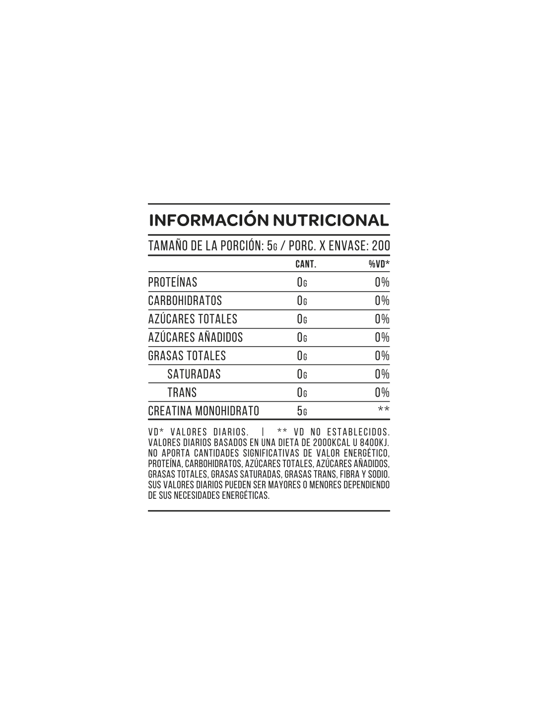 Mantenimiento: Tomar 3-5 g al día después del entrenamiento o en cualquier momento del día para mantener los niveles de creatina.
