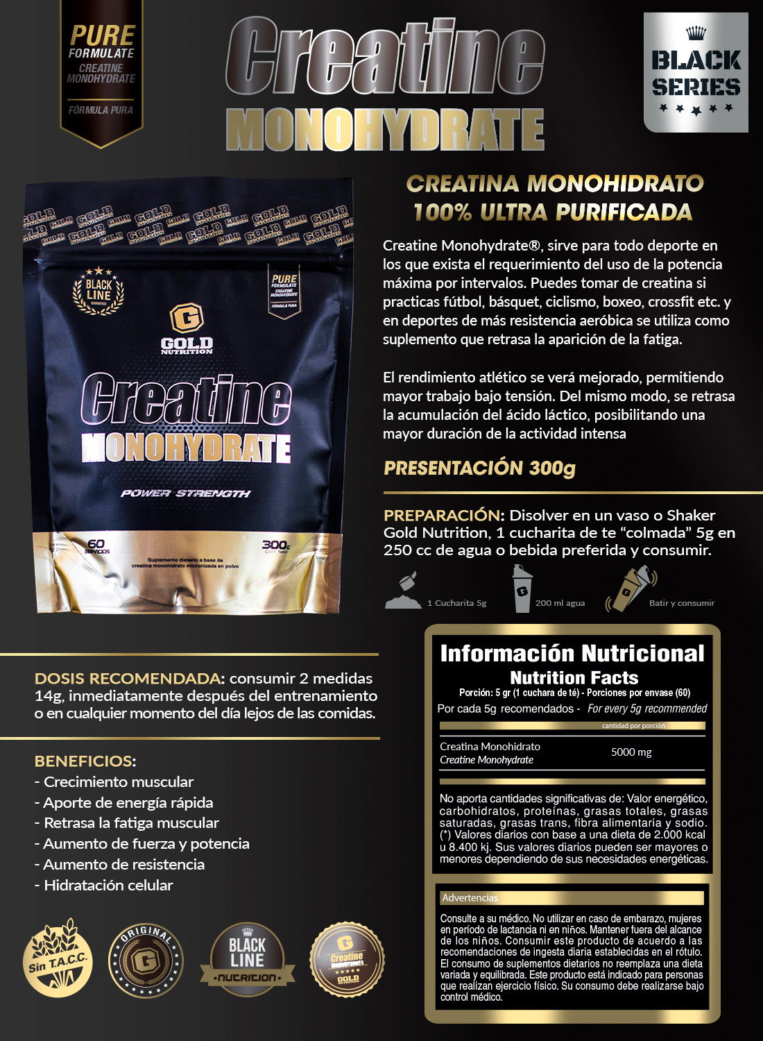 La Creatina de Gold Nutrition es un suplemento en polvo de alta pureza, diseñado para mejorar el rendimiento físico, aumentar la fuerza y potenciar el crecimiento muscular. La creatina es un compuesto natural presente en el cuerpo que ayuda a regenerar el ATP, la principal fuente de energía muscular durante el ejercicio intenso.