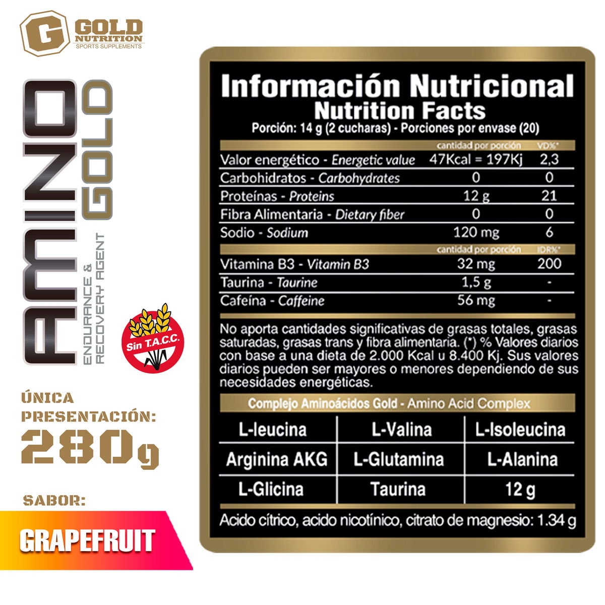 Diluir en un Shaker Gold Nutrition, 1 porción (14gr) en 300 ml de agua fría, batir enérgicamente y consumir
